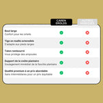La forme de la semelle a été pensée pour s'adapter aux pieds et éviter les mésaventures rencontrées lors du port de chaussures dites "standard", fini les sensations de gênes, de crampes ou de tiraillements.